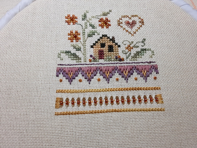 Cross Stitch, Back Stitch, Rhodes Heart. Colonial Knots, Barjello, Hem Stitch, Lazy Daisey